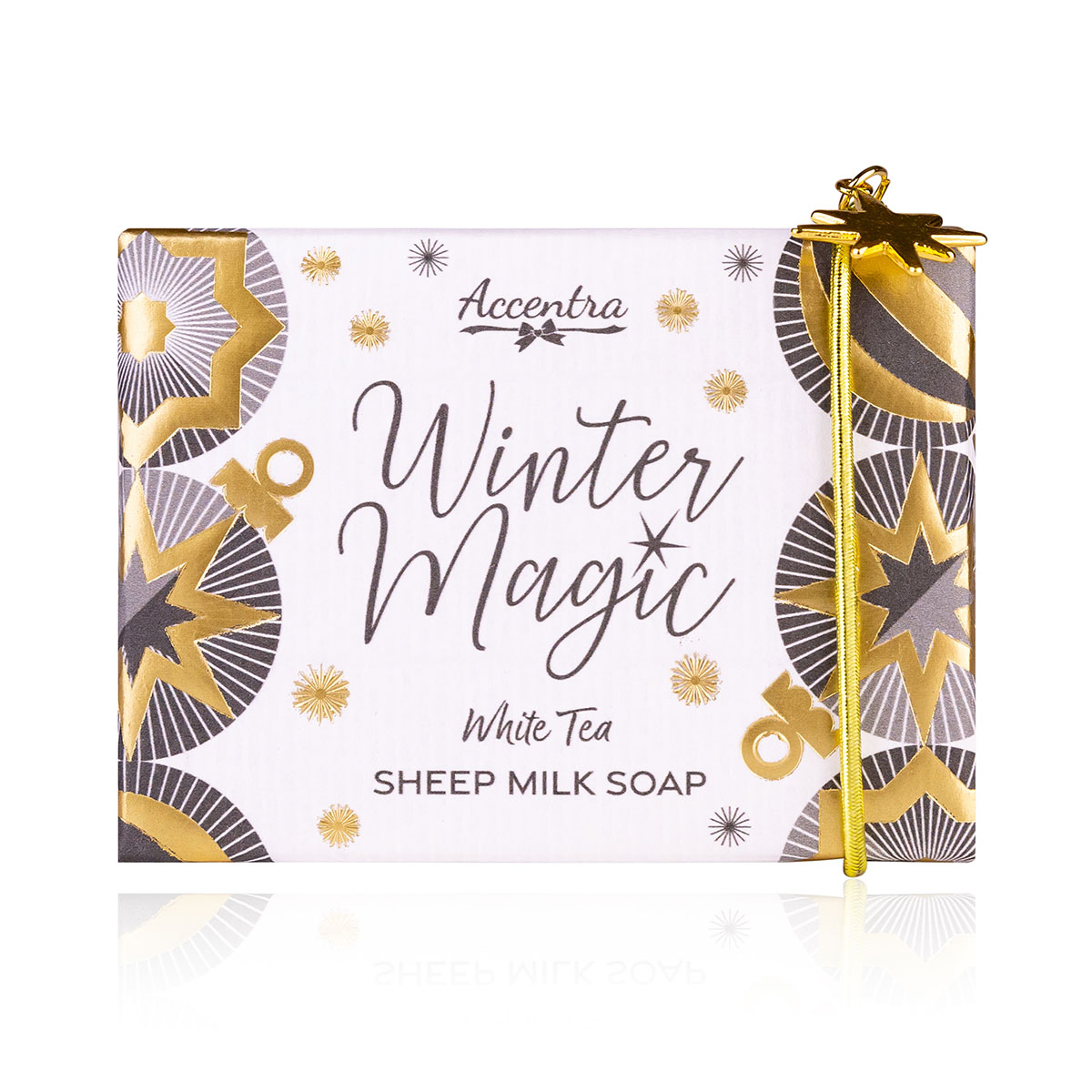 • 1x Handgefertigte Schafmilchseife WINTER MAGIC in Papierverpackung, 100g, Duft: White Tea