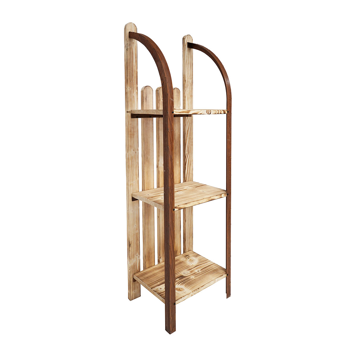Gefertigt aus hochwertigem, geflammtem Holz, vereint dieses Regal traditionelles Handwerk mit modernem Design.