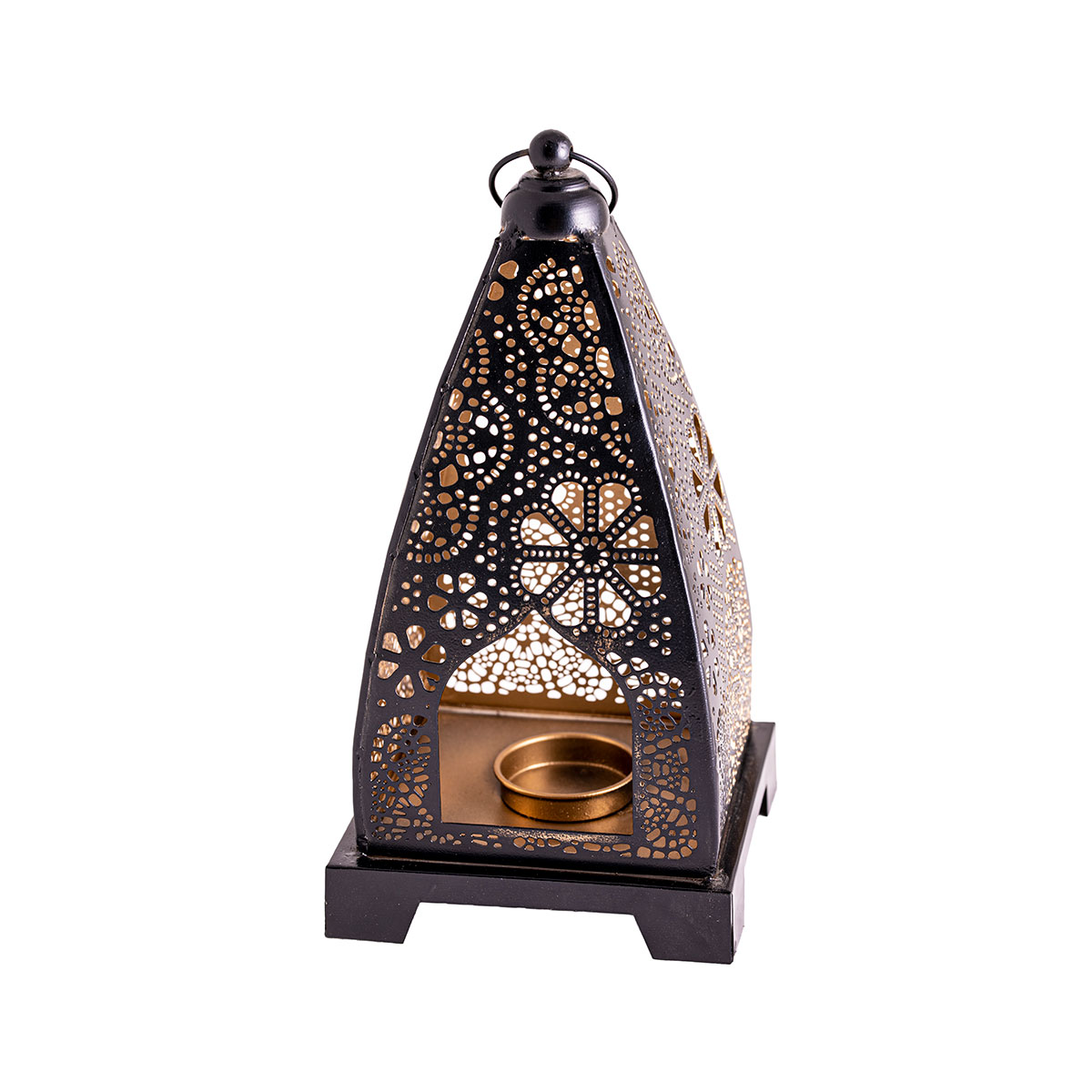 Diese kunstvoll gearbeitete Laterne aus Metall mit strukturiertem Echtglas verleiht jedem Raum oder Garten ein stimmungsvolles, orientalisches Flair. Das sanfte Licht eines Teelichts bringt die filigranen Muster wirkungsvoll zur Geltung und schafft eine warme, beruhigende Atmosphäre - ganz ohne Strom.