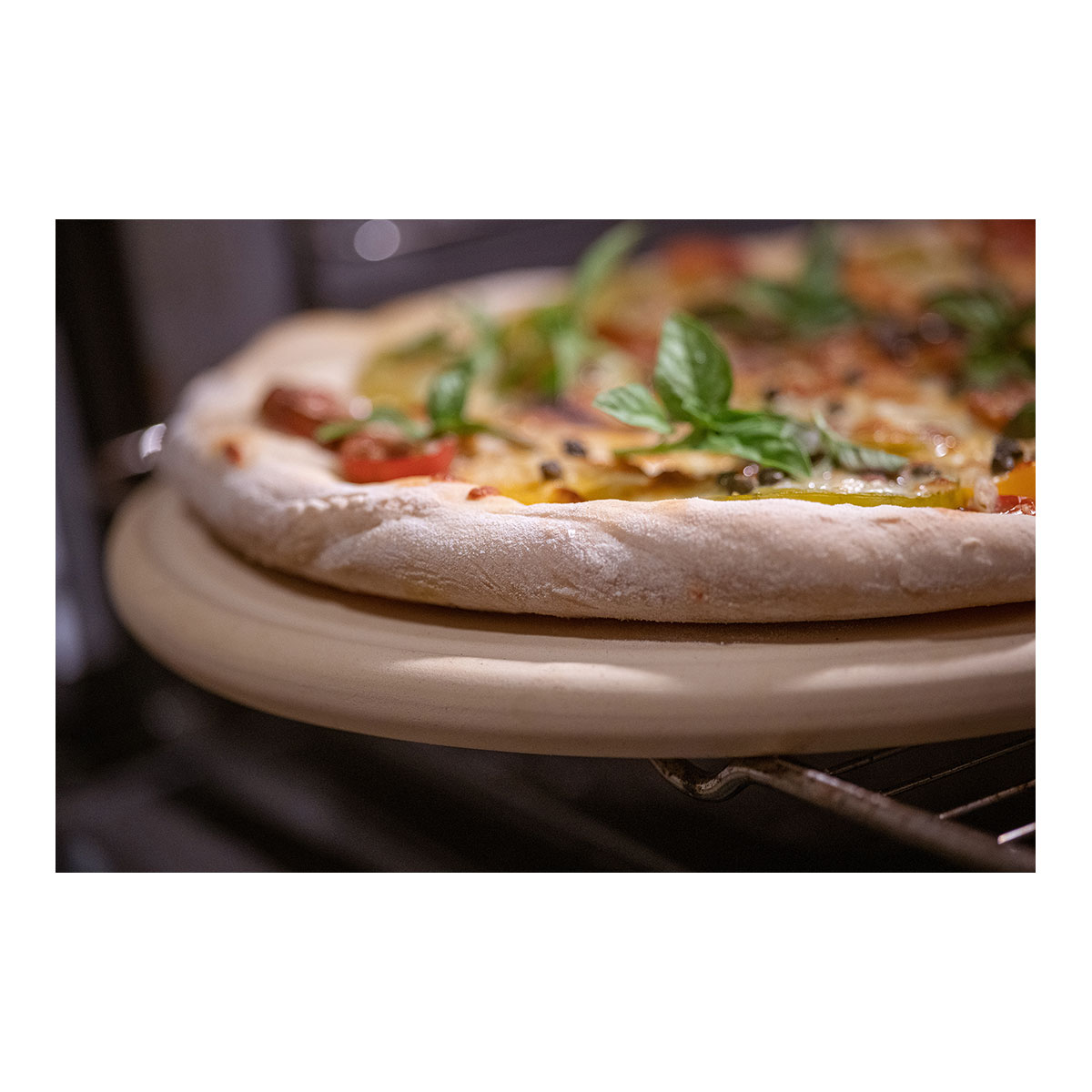 Hitzebeständige CeraFlam®-Keramik mit hoher Wärmespeicherung. Sorgt für knusprige Pizzaböden - ganz ohne Verbrennen.