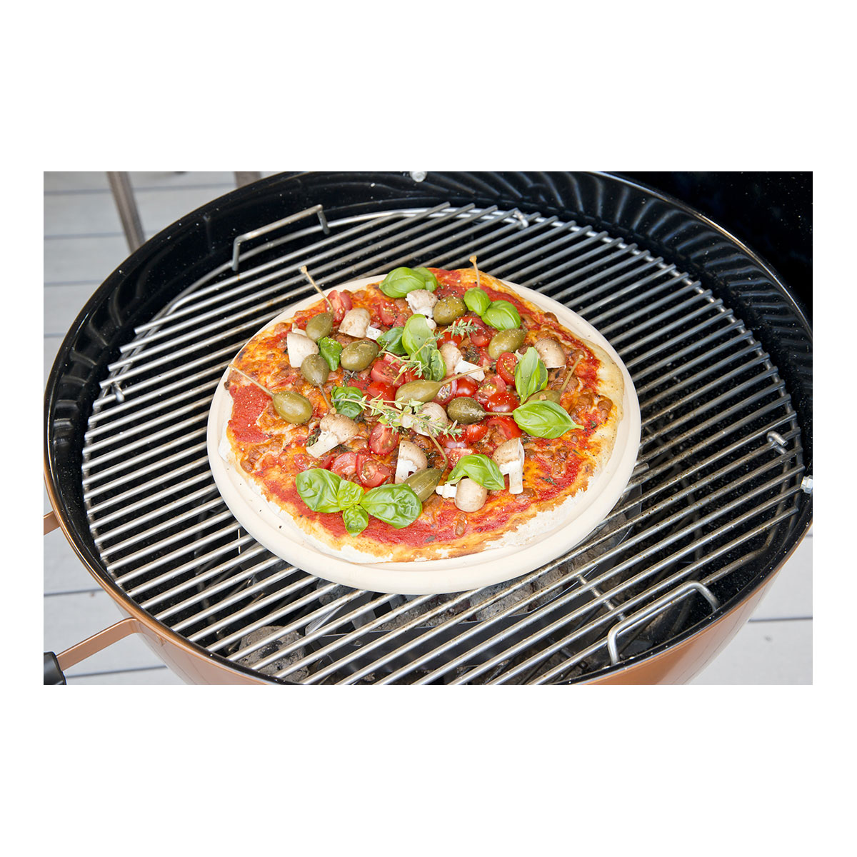 - Mit der Pizzaplatte verwandeln Sie jeden Kugelgrill mit Deckel in einen kleinen Pizzaofen. So gelingen Ihnen knusprige Pizzen auch im Garten - schnell, einfach und ganz ohne elektrische Geräte.
